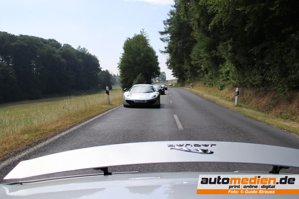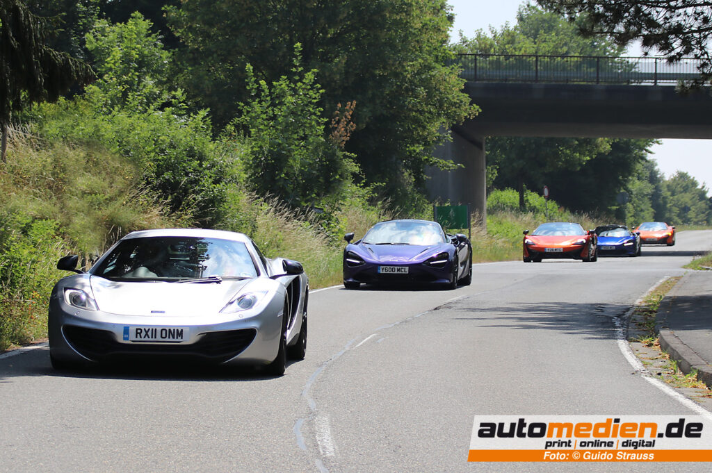Kurzer Stopp in Nassau, eine Runde Erfrischung für alle, Autos durchgezählt, ein bisschen Erfahrungsaustausch untereinander und ne Runde automobile Reise nach Jerusalem gespielt. Zack, nächster Platz heißt 720S. Die Gänsehaut wird chronisch. Diesmal fahre ich alleine. Frank bleibt als Copilot im Job One, der Rest hat ebenfalls seine neuen Lieblingsspielzeuge auserkoren.
